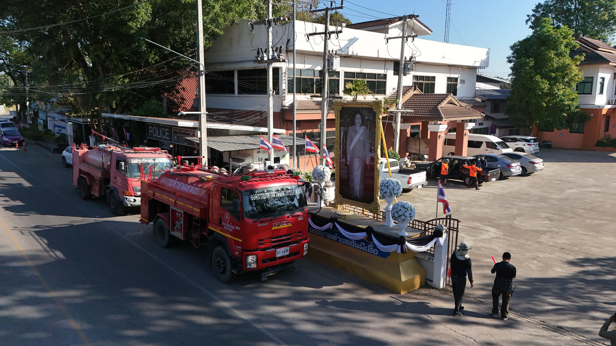 เทศบาลตำบลสันผีเสื้อ นำโดยนายสมบูรณ์ บุญเรือง นายกเทศมนตรีตำบลสันผีเสื้อ ร่วมกับองค์การบริหารส่วนจังหวัดเชียงใหม่ นำรถน้ำเข้าฉีดล้างถนนสุขสัญจร ผ่านหน้าเทศบาลตำบลสันผีเสื้อ ปรับปรุง ซ่อมแซมถนนที่ชำรุด ตัดหญ้าและตกแต่งต้นไม้ตลอดเส้นทางเสด็จฯ ในเขตรับผิดชอบ